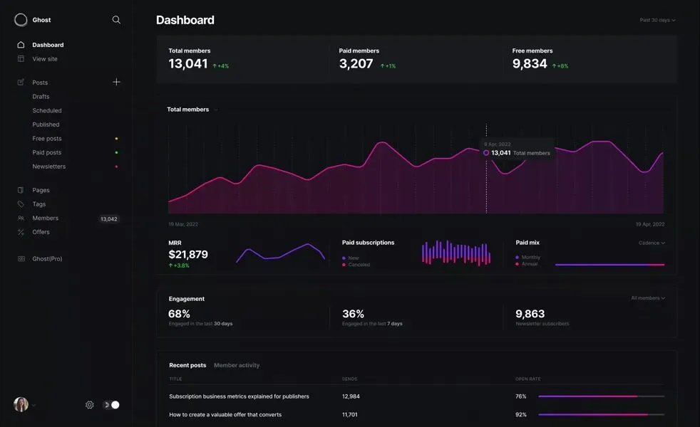 - Ghost, modern blog deneyimi ve temiz performans sunar